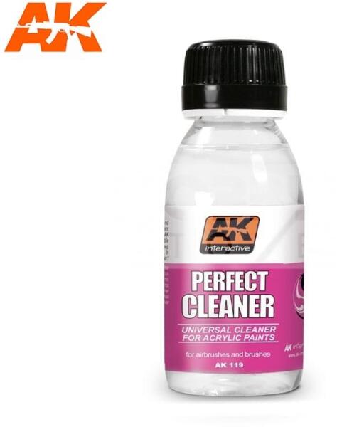 AK-Interactive PERFECT CLEANER - tisztító folyadék 100 ml AK119 Magas minőségű tisztító folyadék ecsetek és szórópisztolyok tisztításához. Tökéletesen eltávolítja a lerakódott akrilfestékeket az ecseteinkről és szórópisztolyunkról. Kiszerelés: 100 ml Gyártó: AK-Interactive